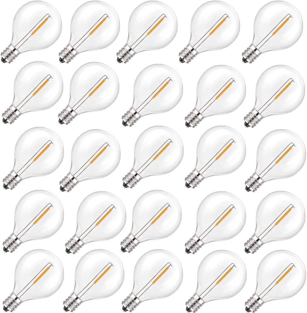 Review Goothy 25 Pack G40 Led Replacement Bulbs, E12 Candelabra LED Globe Light Bulbs for G40 Outdoor String Lights, 0.6W Shatterproof LED Bulbs Equvalent to 5W Incandescent Bulbs, 2700K Warm White